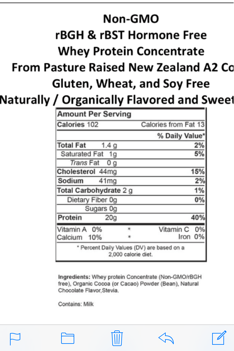 New Non-denatured whey protein concentrate from grass fed Pasture raised New Zealand A2 cows.
